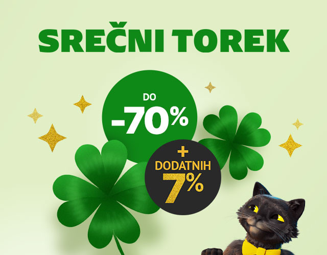Srečni torek. Prihranite dodatnih 7% ob nakupu nad 15€ - samo danes!